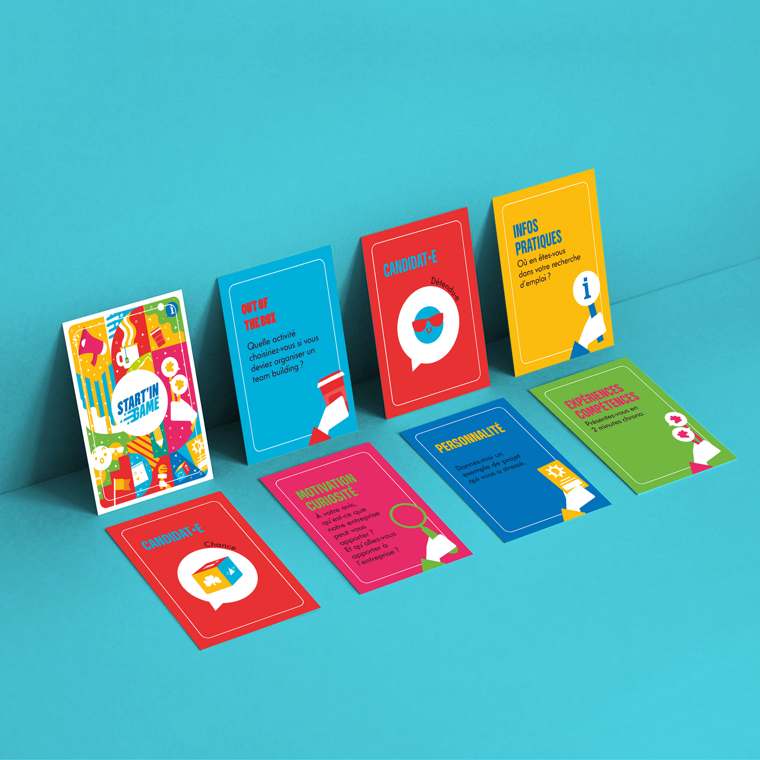 Sous forme d'un jeu de 54 cartes, Start’in Game est à destination des directeur.rice.s ou responsables des ressources humaines, des chargé.e.s de recrutement, des chargé.e.s de formation et aussi des candidat.e.s et de leurs accompagnant.e.s (coach, cabinet, enseignant.e,...).